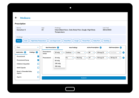 AI-Enabled Prescription Pad within the Remote Doctor App leverages artificial intelligence to streamline the prescription process, enabling AI-based suggestions, avoiding duplication and repetition of medication, and incorporating other key features. This innovative approach enhances the safety and efficiency of remote healthcare delivery.